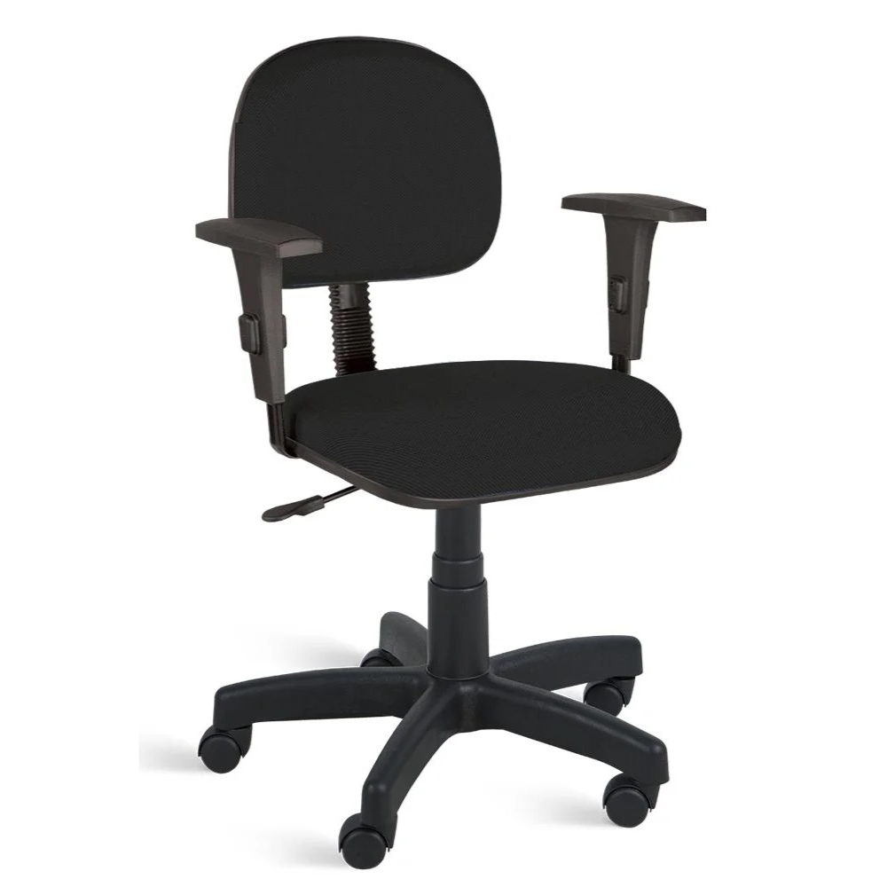Cadeira Giratória modelo secretária Acento e encosto anatômico com espuma injetada, Acabamento em tecido j.serrano, Base giratória com estrela de 5 astes com regulagem de altura por pistão a gás, Braço com regulagem de altura.